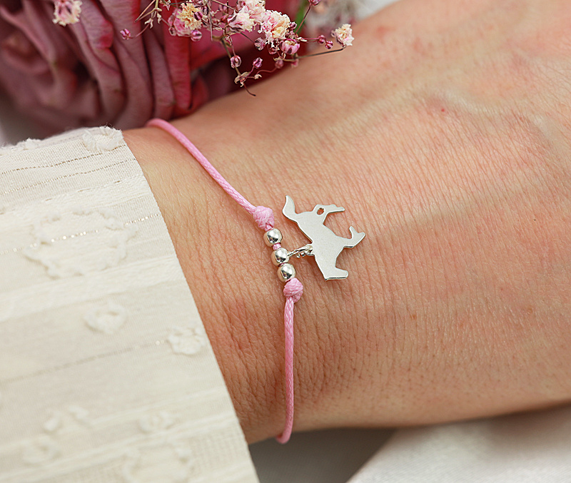 Proponujemy bransoletkę delikatną zawieszką pod grawerunek. Wybierz kolor sznureczka, rodzaj zawieszki i grawerunek, by stworzyć spersonalizowaną bransoletkę.