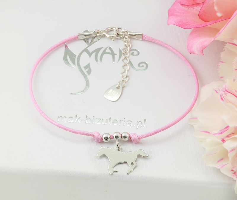 1636/4 bransoletka konik personalizowana srebro 925 na sznurku koń
