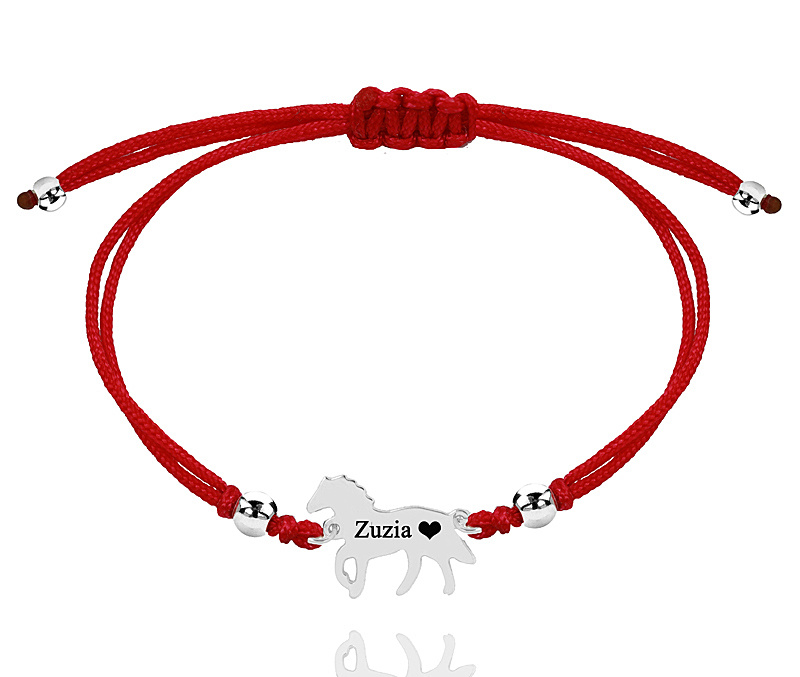 1636/2 bransoletka personalizowana srebro 925 na sznurku koń konik