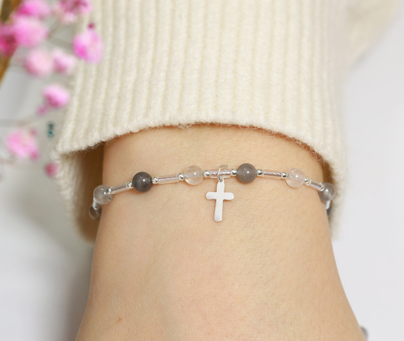 1631/14 bransoletka różaniec srebro 925 z kamieniami naturalnymi