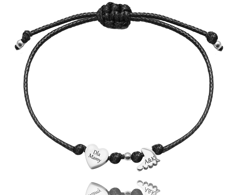 1645/7 bransoletka z grawerem dla mamy na sznurku stal szlachetna