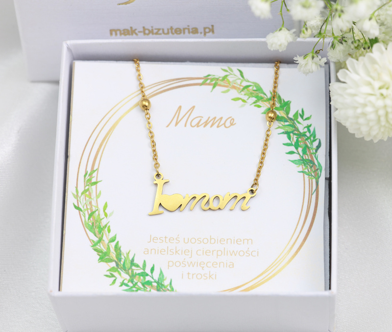 Do biżuterii można dokupić bilecik z życzeniami dla Mamy lub eleganckie pudełko z Twoją dedykacją.