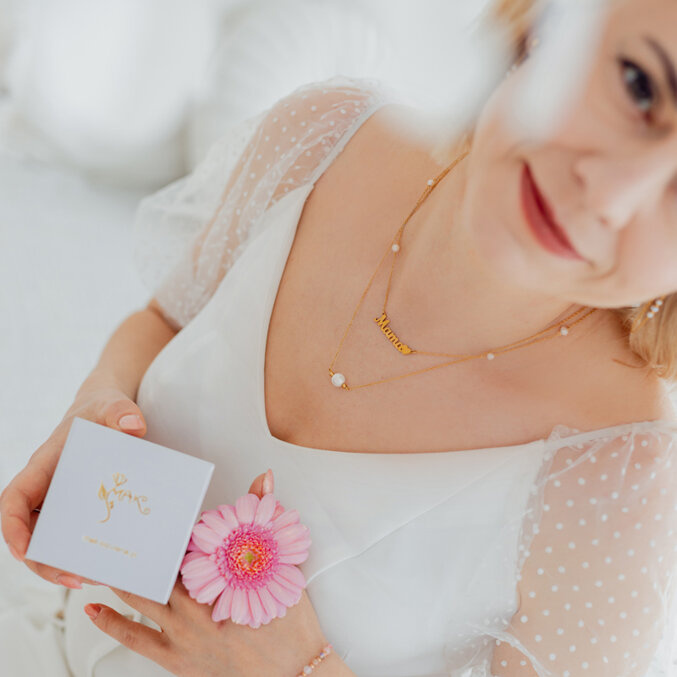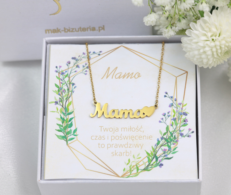 Do biżuterii można dokupić bilecik z życzeniami dla Mamy.