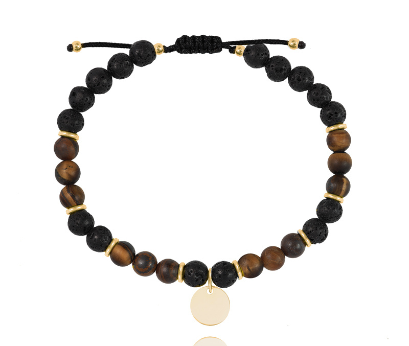 1628/10 bransoletka męska stalowa z grawerem koralikami drewnianymi i kamyczkami wulkanicznymi