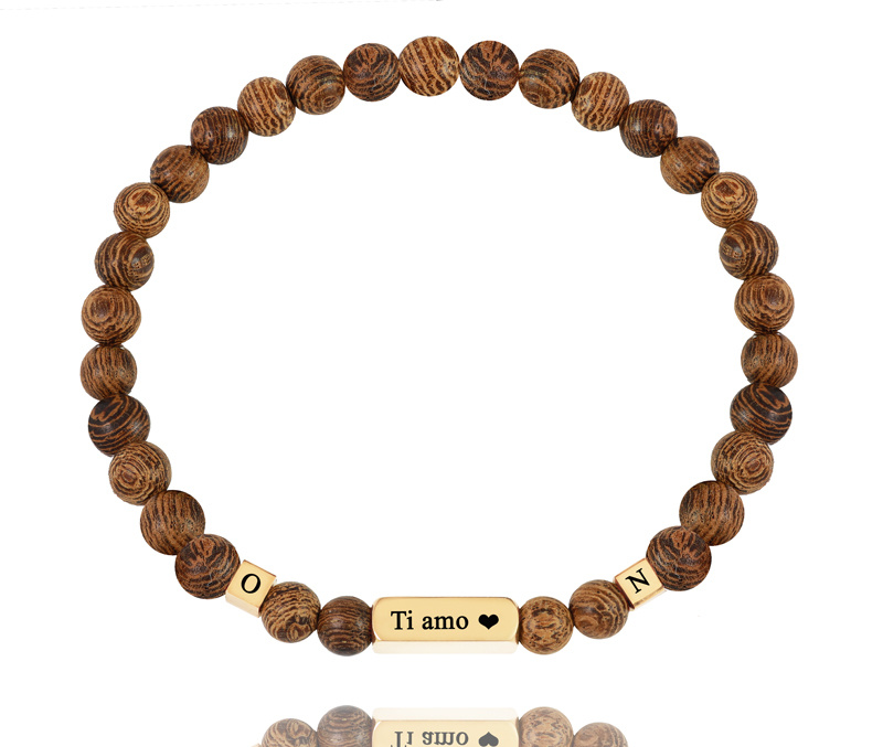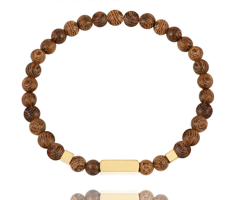 1628/2 bransoletka męska stalowa z koralikami drewnianymi