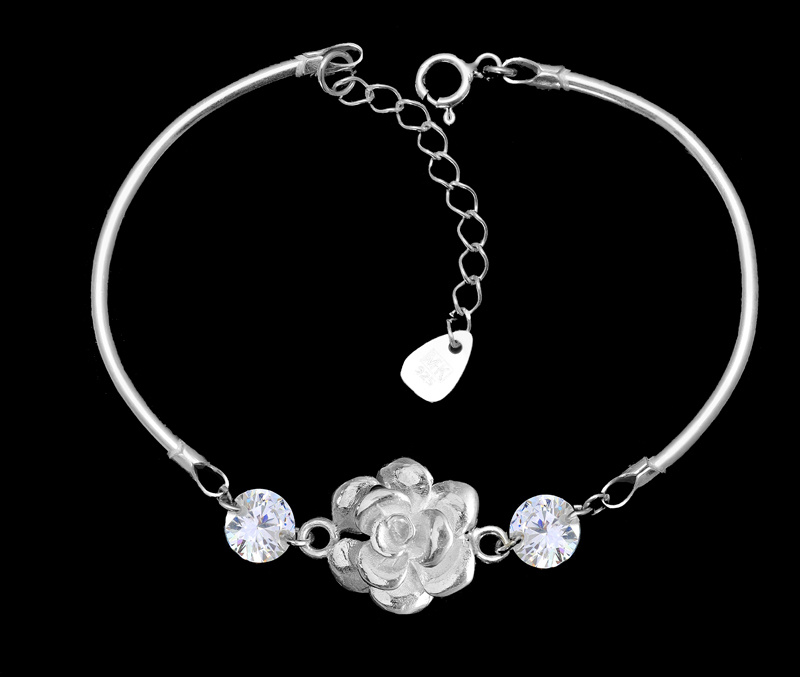 Przedmiotem oferty jest bransoletka srebrna 925 z kwiatem i cyrkoniami.