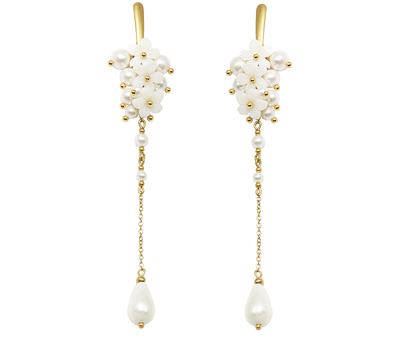 1663 kolczyki ślubne pozłacane perły z kwiatami