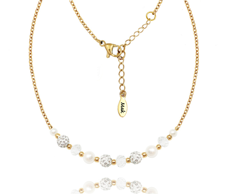 1668 naszyjnik na ślub pozłacany z perłami, kryształkami i kuleczkami disco ball