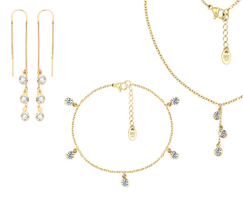 Przedmiotem oferty jest pozłacany komplet z cyrkoniami. Klasyczny design sprawi, że będzie on pasować kobiecie w każdym wieku, również świetnie sprawdzi się jako biżuteria ślubna.
