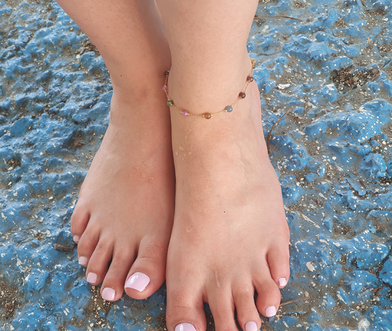 1646/16 bransoletka na stopę kolorowe kamienie naturalne