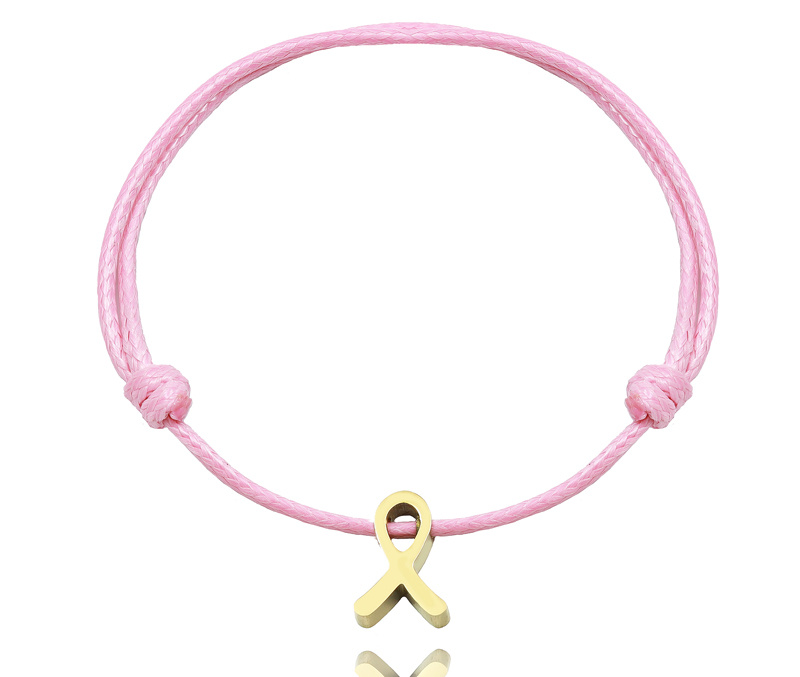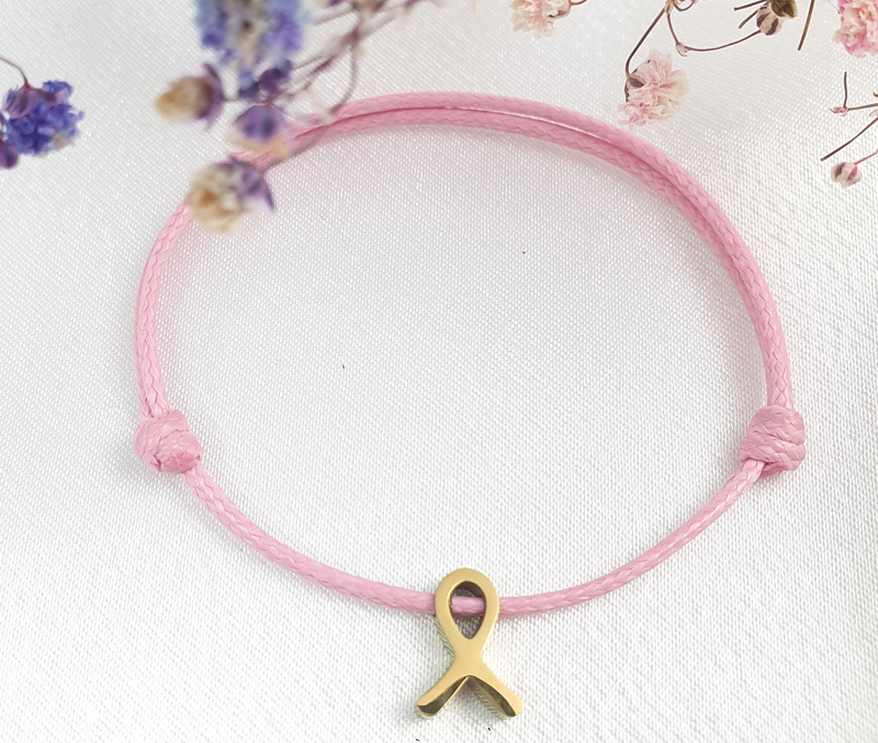 1687 pozłacana bransoletka różowa wstążka amazonka