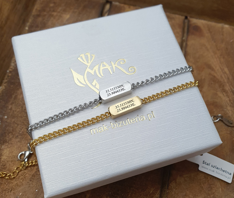 1678 bransoletka płytką z grawerunkiem stalowa