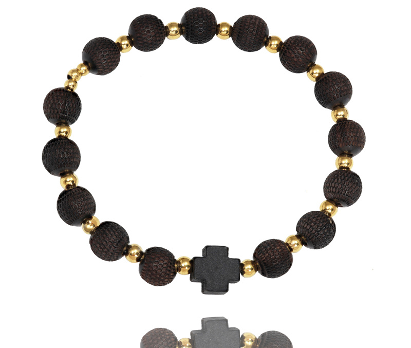 1707/1 bransoletka różaniec pozłacana hebanowe koraliki