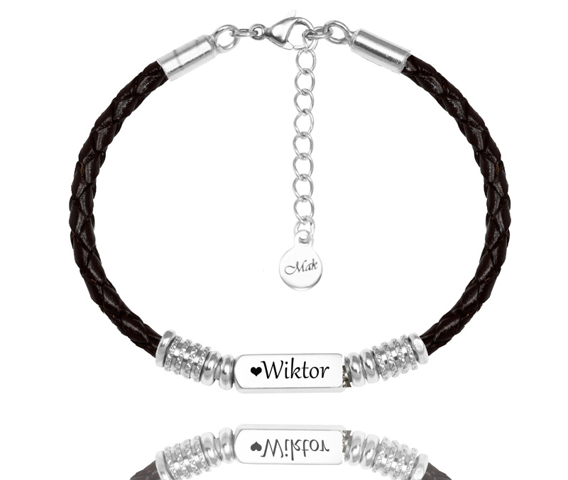 Przedmiotem oferty jest oryginalna bransoletka z grawerunkiem. Bransoletka składa się z gładkiego rzemienia do którego dołączona jest blaszka na której wykonamy dowolny krótki grawerunek. .