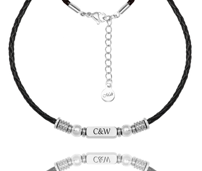 Naszyjnik wykonany na plecionym rzemyku z blaszka pod grawer.