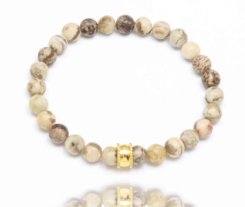 Przedmiotem oferty jest bransoletka wykonana z jaspisu oraz złotej przekładki.