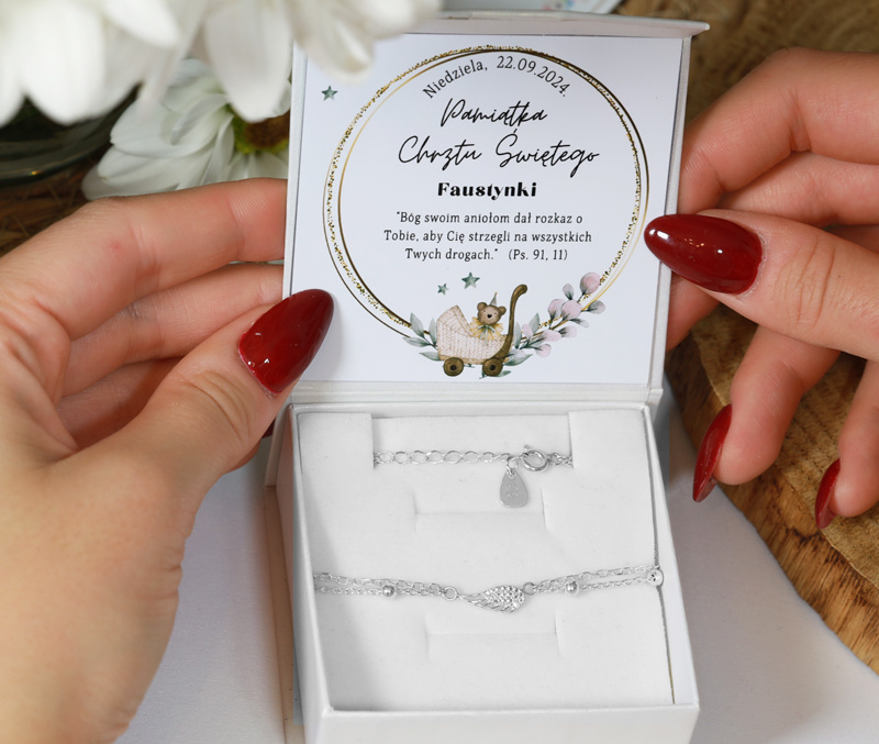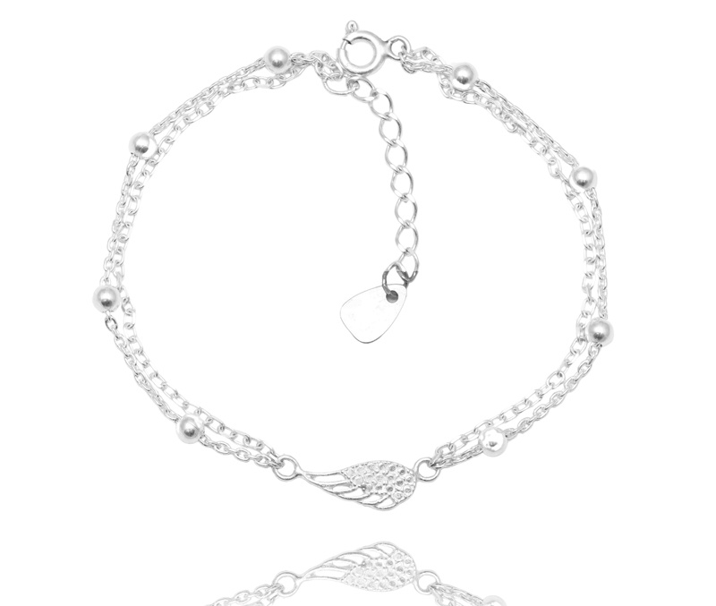 Przedmiotem oferty jest srebrna bransoletka subtelnym skrzydłem anioła.