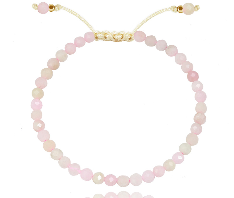 1728/15 bransoletka z fasetowanym opalem różowym złocona kamień naturalny na sznurku