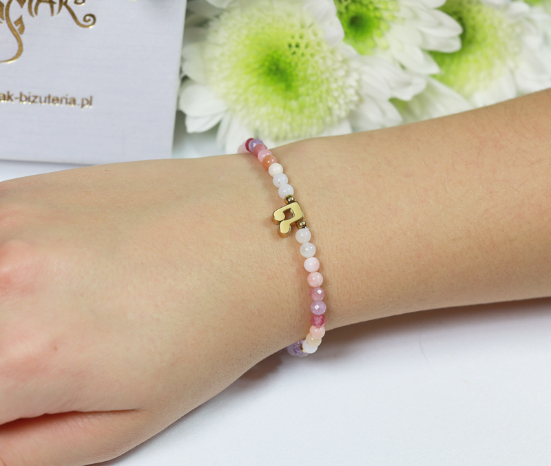 - bransoletka na gumce, długość bransoletki bez rozciągania 17 cm (na życzenie możemy zmienić długość bransoletki);