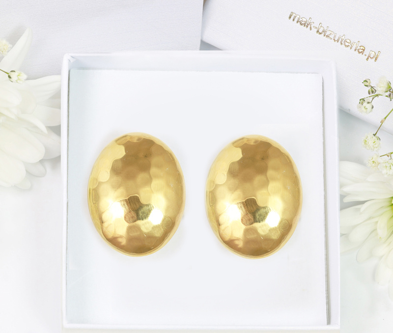 1726/1 masywne kolczyki złocone w kształcie młotkowanego owalu