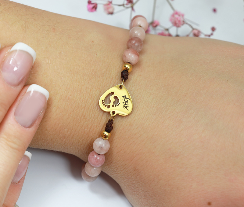 Bransoletka ta to wyjątkowy i pełen sentymentu dodatek, który idealnie sprawdzi się jako prezent dla mamy lub przyszłej mamy. Jej delikatny design i personalizacja sprawiają, że jest to wyjątkowa pamiątka. Centralnym elementem bransoletki jest zawieszka w kształcie serca, która nadaje jej romantycznego charakteru. W sercu znajduje się delikatny ślad stópki dziecka, co stanowi piękny symbol macierzyństwa.