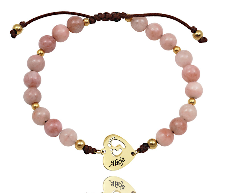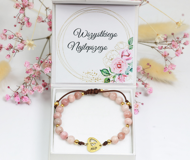 1738 różowa bransoletka złocona z grawerem i kamieniem słonecznym