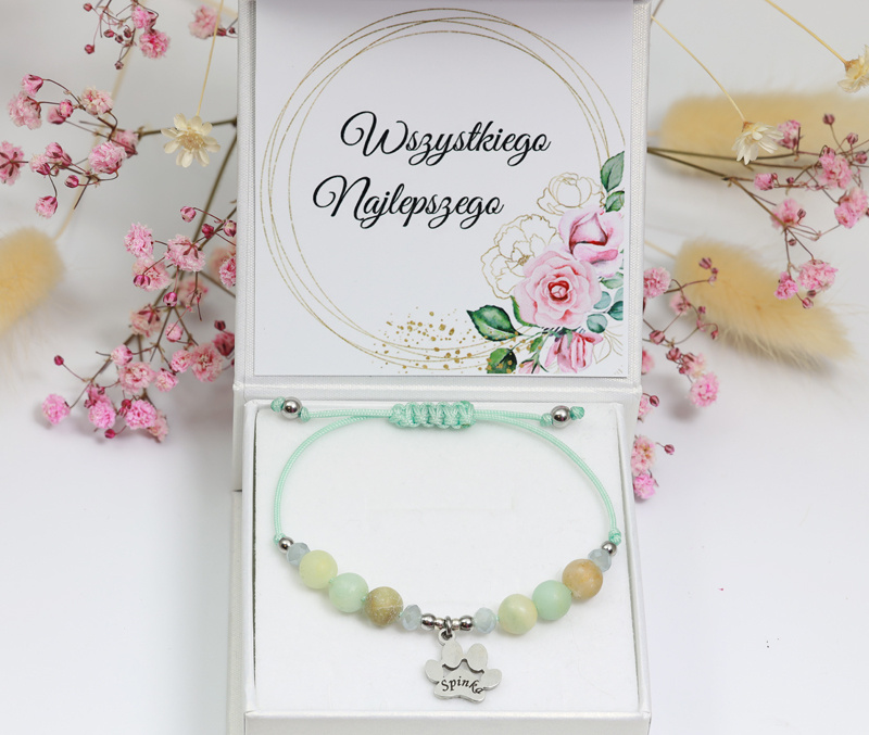 1740 miętowa bransoletka z łapką z grawerem i amazonitem