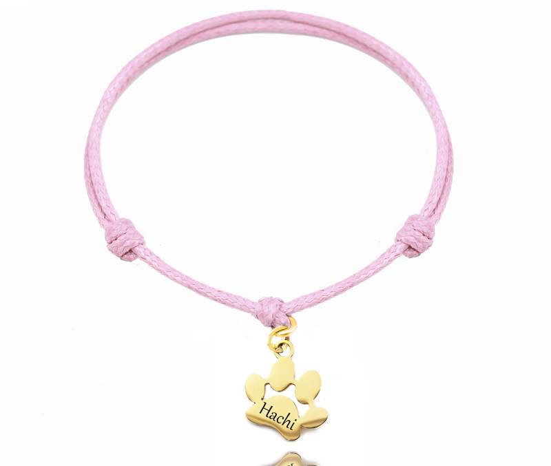 1717/11 bransoletka na sznurku z łapką z grawerem złota lub srebrna