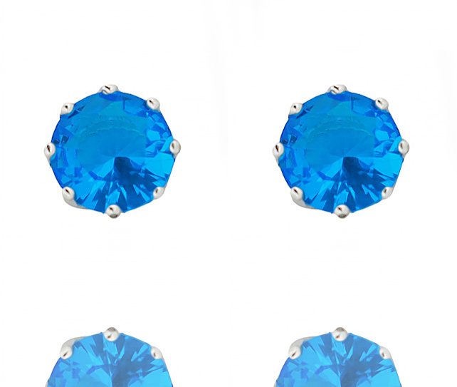 Przedmiotem oferty są kolczyki na sztyfcie z błękitnymi cyrkoniami.
