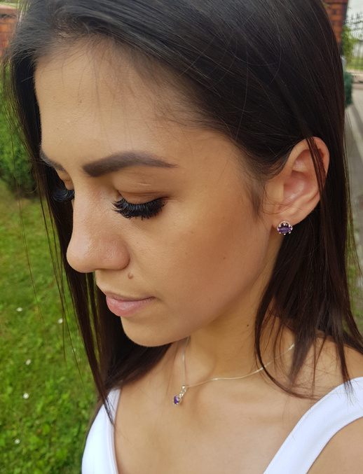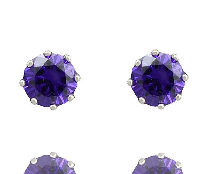 Przedmiotem oferty są kolczyki na sztyfcie z fioletowymi cyrkoniami.