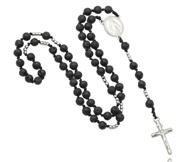 Różaniec z Lawy Wulkanicznej z Medalikiem i Krzyżem