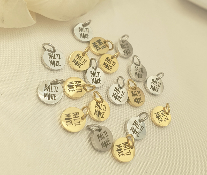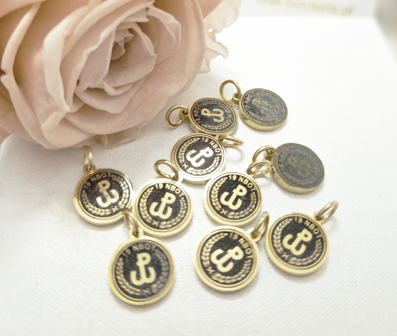 1754 Kółeczko blaszka grawerowana z logo złota stal szlachetna 8 mm Dla firm HURT