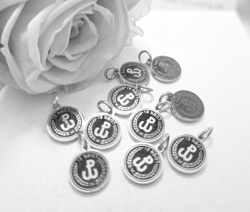1754 Kółeczko blaszka z logo stal szlachetna 8 mm Dla firm HURT