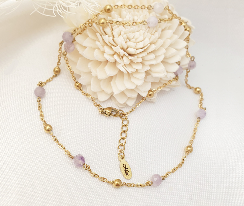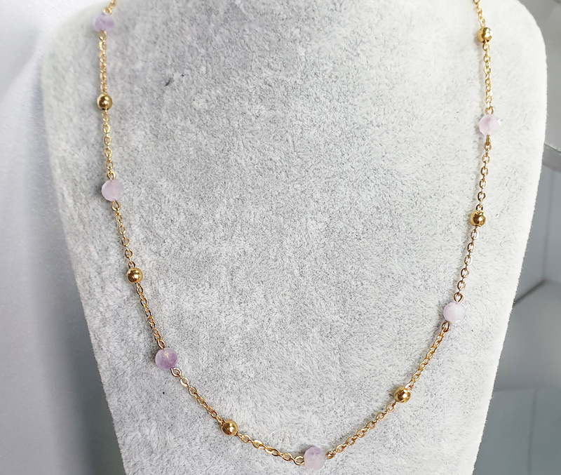 Pozłacany naszyjnik z fioletowymi kamieniami naturalnymi 1789