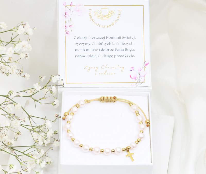 Elegancka bransoletka różaniec to idealny wybór dla osób poszukujących wyjątkowego prezentu dla siebie lub bliskiej osoby, który reprezentuje wartości chrześcijańskie. Piękny różaniec może być świetnym prezentem na Pierwszą Komunię Świętą czy Bierzmowanie. W połączeniu z eleganckim pudełkiem z dedykacją stworzy niezapomniany upominek.
