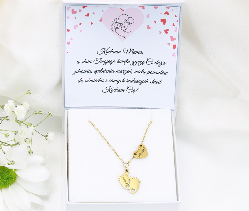 Złoty naszyjnik z możliwością personalizacji kształtu zawieszki i graweru to wyjątkowy prezent dla mamy. Dzięki opcji indywidualnego dopasowania kształtu zawieszki oraz unikalnego graweru, możesz stworzyć biżuterię, która najlepiej oddaje charakter i emocje najważniejszych chwil – od baby shower, przez narodziny dziecka, aż po Dzień Mamy. Elegancki design, wysoka jakość wykonania i trwały materiał sprawiają, że naszyjnik ten stanie się nie tylko piękną ozdobą, ale i sentymentalną pamiątką na długie lata.