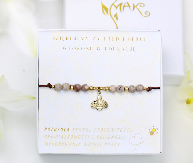 1807/4 zestaw dla nauczyciela bransoletka beżowa z pszczółką