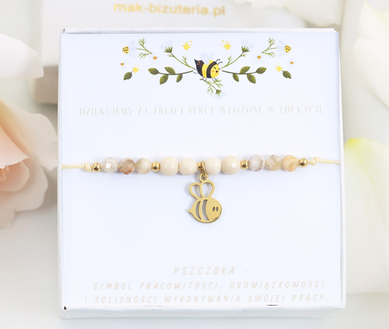 zestaw dla Pani Przedszkolanki bransoletka z grawerem grupa Pszczółki 1807/12