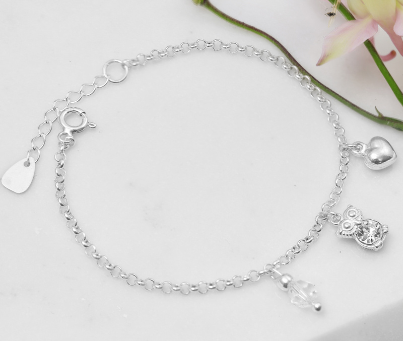 Bransoletka srebrna 925 z serduszkiem pod grawerunek oraz z sówką. Jeżeli chcesz w wyjątkowy sposób podziękować swojej kochanej pani nauczycielce, ta bransoletka dobrze się sprawdzi.