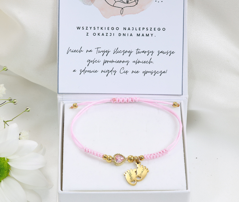 Bransoletka z możliwością personalizacji to wyjątkowy prezent na specjalne okazje – baby shower, narodziny dziecka czy Dzień Mamy. Elegancki design i opcja graweru sprawiają, że stanie się nie tylko piękną ozdobą, ale i sentymentalną pamiątką na lata.