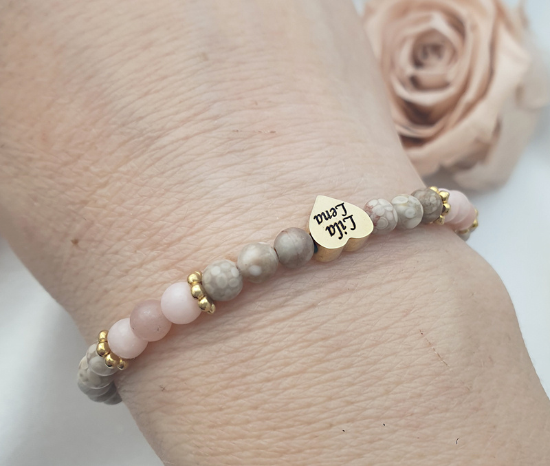 beżowo-różowa bransoletka pozłacana z grawerem i kamieniami naturalnymi Premium 1794/26