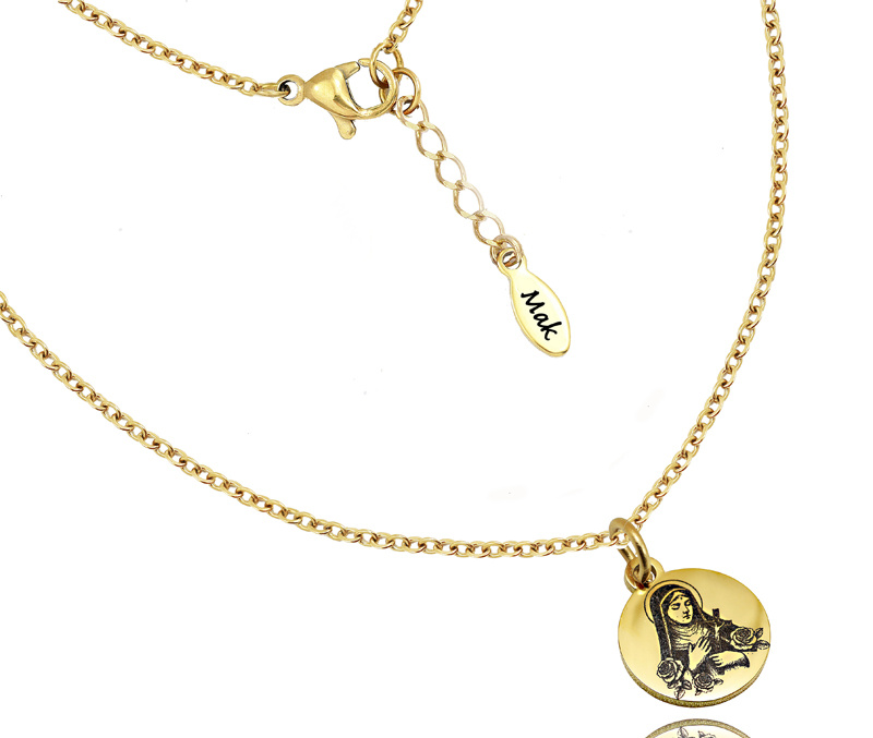 Piękny, delikatny naszyjnik z medalikiem św. Rity to nie tylko wyjątkowa ozdoba, ale i symbol duchowego wsparcia, nadziei oraz wewnętrznej siły. Wykonany z najwyższej jakości stali szlachetnej pozłacanej, prezentuje wizerunek Świętej Rity oraz subtelny grawer z modlitwą: „Św. Rito, módl się za nami”.