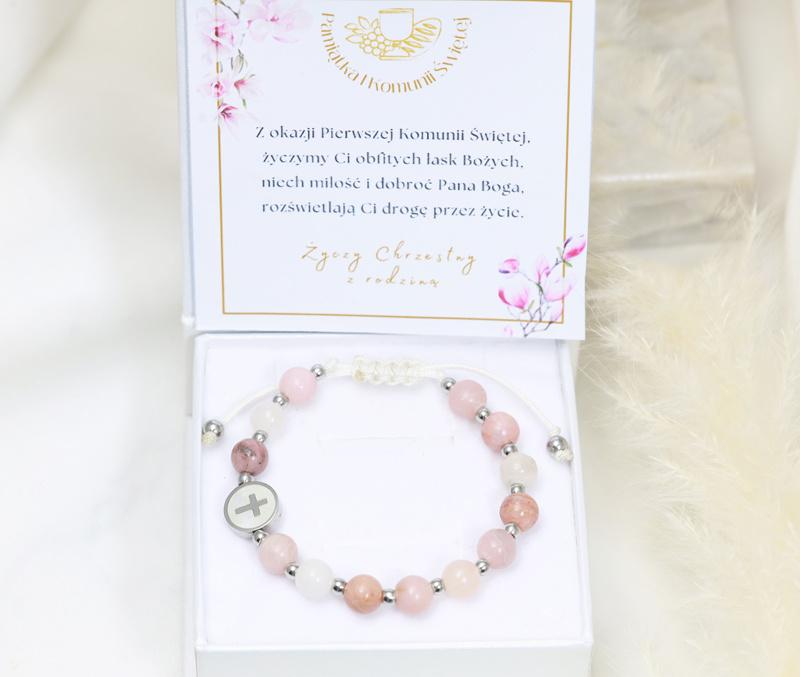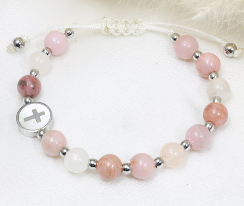 Odkryj wyjątkowe bransoletki różańcowe, które łączą w sobie symbol wiary z eleganckim stylem. Wykonane z naturalnych kamieni o delikatnych, pastelowych odcieniach oraz srebrnych elementów, te różańce nie tylko wspierają codzienną modlitwę, ale również stają się subtelną ozdobą, którą możesz nosić każdego dnia.