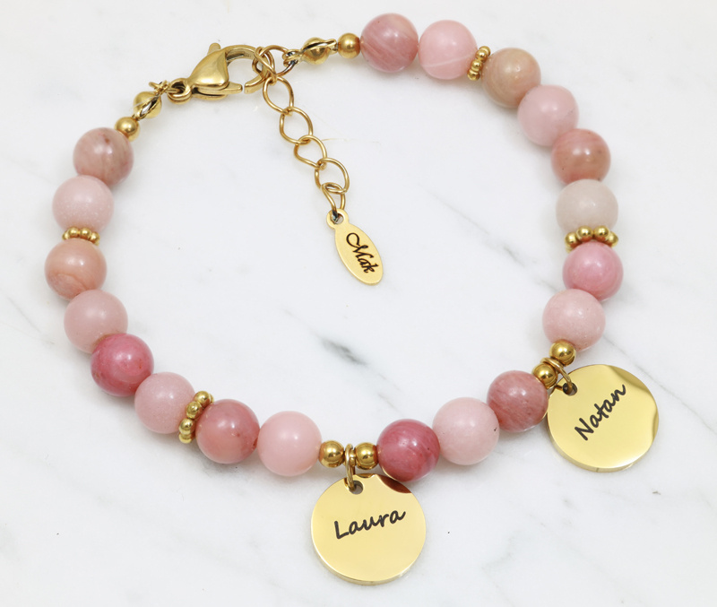 Bransoletka dla mamy z naturalnych kamieni – personalizowana z grawerem imion