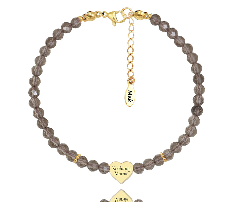 1728/24 bransoletka damska z grawerem serce kwarc dymny