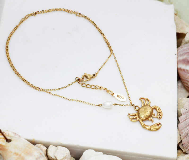 Złoty naszyjnik z wyjątkową zawieszką w kształcie kraba – symbolu siły i odwagi. Na cienkim łańcuszku zawieszono hodowlaną perełkę i kraba, który od razu przyciąga wzrok. To biżuteria idealna na lato i urlopowe wyjazdy, ale równie dobrze sprawdzi się w codziennych stylizacjach.