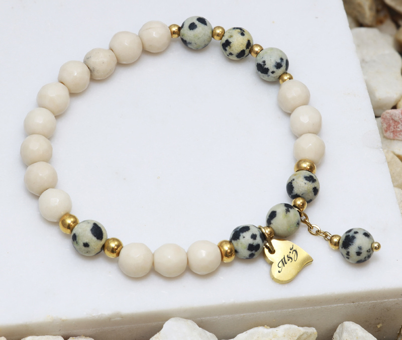 bransoletka z grawerem na gumce jaspis dalmatyński 1825
