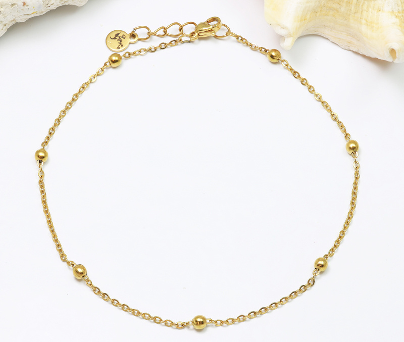 minimalistyczna bransoletka pozłacana na stopę z kuleczkami 1827/3