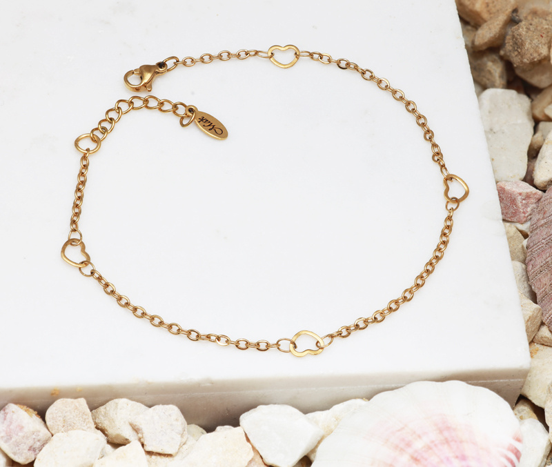 minimalistyczna bransoletka pozłacana na stopę z sercami 1827/5