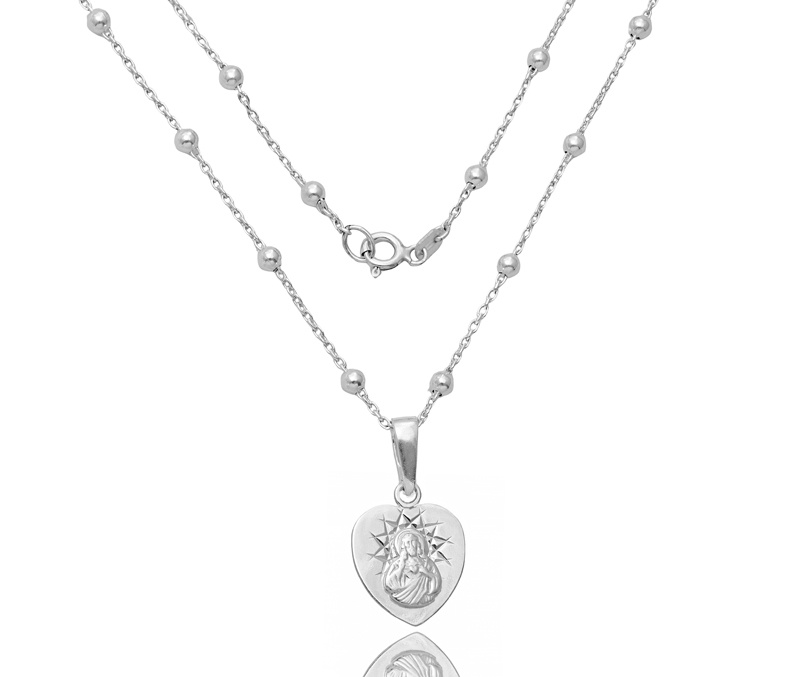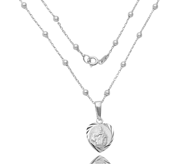 Delikatny i elegancki naszyjnik wykonany z wysokiej jakości srebra próby 925. Subtelny łańcuszek z kuleczkami doskonale komponuje się ze szkaplerzem w kaształcie serca.
